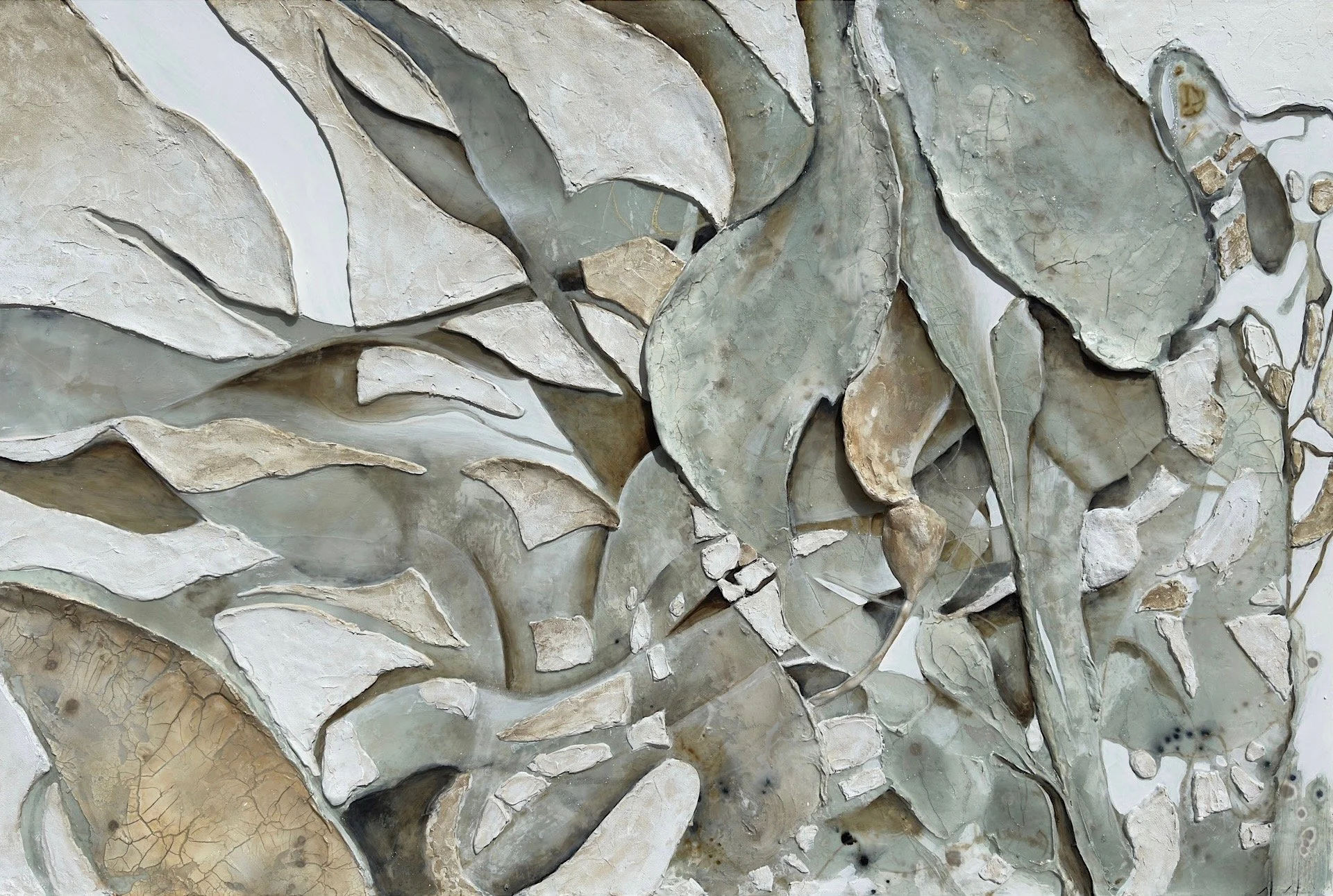 I dipped my brush into my morning coffee leftovers to stain the textures in the early stages of the process. Original mixed media painting on canvas 36” x 48.” SOLD