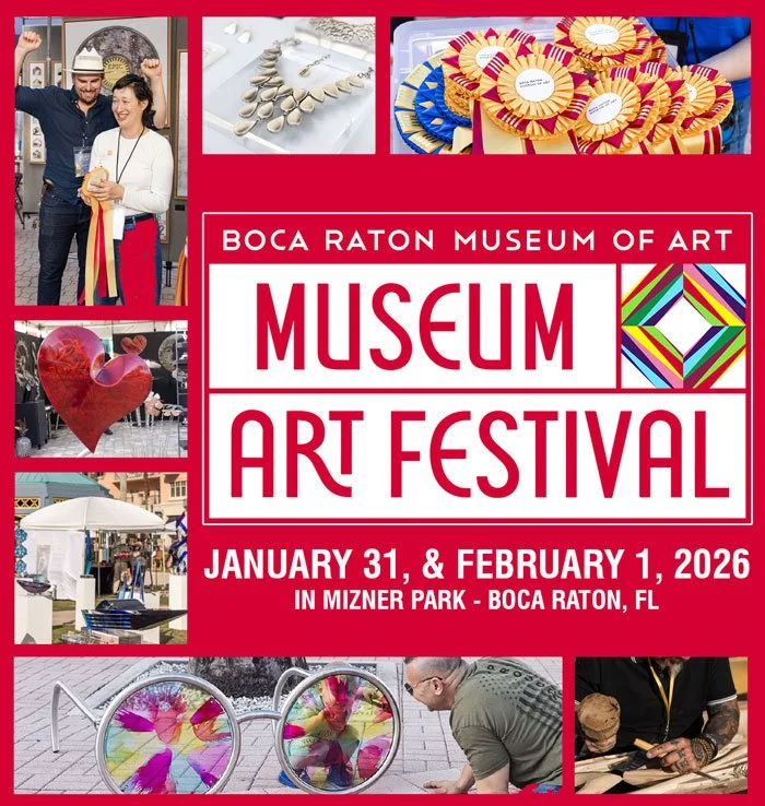 The Boca Raton Museum of Art proudly presents the 2026 annual outdoor, juried art festival. The BOCA MUSEUM ART FESTIVAL in MIZNER PARK on January 31 and February 1, 2026, in Boca Raton, Florida.