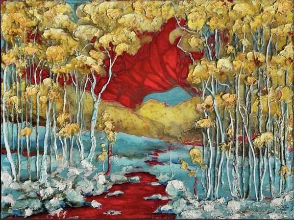 Aspen Fire in the Sky 48”x36” by Christine Adele Moore